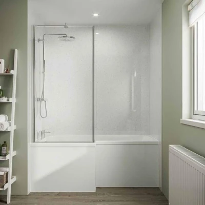 The stunning Multipanel Classic White Snow Hydrolock Shower Wall Panel brings timeless elegance and spa-like luxury to any bathroom or wet room. Featuring a white base with sparkling flecks, it captures and reflects light, creating a bright, sophisticated ambiance that complements both traditional and modern aesthetics.The Hydrolock tongue and groove edge allows for seamless, mid-joint-free installation, ensuring a smooth, flawless finish. These fully waterproof, 11mm thick panels are quick to install, can be cut to size, and even fitted over existing tiles, saving time and effort. Backed by a 30-year warranty for lasting peace of mind.Features & Benefits: Multipanel Classic White Snow Tongue & Groove Hydrolock Shower Wall Panel - 2400mm x 900mm, White base with light-reflecting flecks for a sparkling effect, Hydrolock technology for a seamless, FSC-certified, 100% recyclable Medite MDFPlease note: , To maintain Multipanel's 30-year warranty, store panels flat, not vertically or on trestles, and condition at room temperature for 48 hours before installation., Use Multipanel High Grab Panel Adhesive/Sealant. The warranty covers product failure but is void if installation and care guidelines are not followed., For a 100% watertight seal, apply silicone at all edges, whether using profiles, shower enclosures, or the Hydrolock system. Use offcuts behind sinks for a coordinated look, sealing all exposed edges with profiles and silicone., To clean, use warm water and mild detergent. Avoid scouring products, as improper cleaning may invalidate the warranty.. Multipanel Classic White Snow Tongue & Groove Hydrolock Shower Wall Panel - 2400mm x 900mm Laminated MDF
