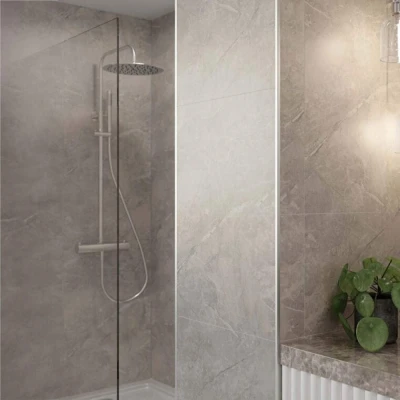 Transform your bathroom with the luxurious appeal of Multipanel's Pure Valmasino Marble Tongue & Groove Hydrolock Shower Wall Panel. Featuring a stunning blend of grey tones and authentic veining patterns, this panel boasts a satin velvety texture that creates a natural feel and exudes sophistication.Its Hydrolock tongue and groove edge allow the panels to be joined together without the use of mid-joints, giving you a smooth and discreet finish. With an impressive 6mm tolerance, these panels are easy to install and produce a great finish every time. They're fully waterproof and offer an alternative to traditional wall tiles, saving you time and hassle.Features & Benefits: Multipanel Pure Valmasino Marble Tongue & Groove Hydrolock Shower Wall Panel - 2400mm x 1200mm, 11mm thick, lightweight and easy to handle, Can be installed over old tiles, saving time and hassle, Constructed from FSC-certified Medite Exterior MDF, 100% recyclable, and covered by a 30-year warrantyPlease note: , To maintain Multipanel's 30-year warranty, store panels flat, not vertically or on trestles, and condition at room temperature for 48 hours before installation., Use Multipanel High Grab Panel Adhesive/Sealant. The warranty covers product failure but is void if installation and care guidelines are not followed., For a 100% watertight seal, apply silicone at all edges, whether using profiles, shower enclosures, or the Hydrolock system. Use offcuts behind sinks for a coordinated look, sealing all exposed edges with profiles and silicone., To clean, use warm water and mild detergent. Avoid scouring products, as improper cleaning may invalidate the warranty.. Multipanel Pure Valmasino Marble Tongue & Groove Hydrolock Shower Wall Panel - 2400mm x 1200mm Laminated MDF