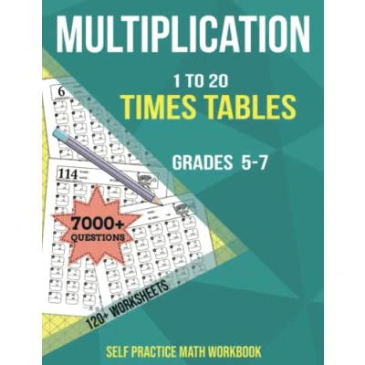 MULTIPLICATION : 1 To 20 Times Tables, Grades 5 7, 120+ Worksheets: Self practice Math Workbook (with Answer Key), Speed Drills, 7000+ Questions, Ages 10 13