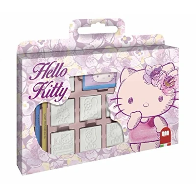 Multiprint Window Box 7 Stamps for Kids Hello Kitty Olympics, 100% Made in Italy, Personalized Children, Wood and Natural Rubber, Non toxic Washable Ink, Gift Idea, art.07803