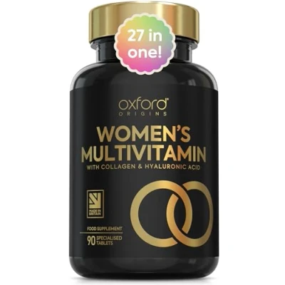 ✔️ 27 ESSENTIAL INGREDIENTS: ALL-IN-ONE DAILY WELLNESS FOR WOMEN — Our comprehensive womens multivitamin formula features 27 essential ingredients to support overall health, including energy, immunity, skin, hair, and bones–all in just 2 easy-to-swallow tablets per day. ✔️ BEAUTY-BOOSTING MARINE COLLAGEN & HYALURONIC ACID — With hydrolyzed Marine Collagen peptides and Hyaluronic Acid, these multivitamin tablets for women help nourish and hydrate similar to skin hair and nails vitamins, enhancing elasticity and promoting a youthful, radiant glow. ✔️ SUPPORTS ENERGY, HORMONES & IMMUNITY — Our womens vitamins are formulated with key nutrients to support hormone regulation, energy levels, fatigue, and immune function, so you can feel your best and stay energized throughout the day. ✔️ ALWAYS LAB TESTED TWICE ENSURE QUALITY — Each Oxford Origins formula is rigorously tested during manufacturing and by the leading third-party lab to ensure it delivers exactly what it promises. This commitment to purity, strength, and transparency ensures Oxford Origins always provides the highest-quality solutions. ✔️ EXPERTLY MADE IN THE UK — By choosing Oxford Origins, you will get premium-quality vitamins women need and support local UK businesses. We proudly create every supplement in Oxford or Yorkshire, in our BRC grade AA accredited labs. ✔️ 100% MONEY-BACK SATISFACTION GUARANTEE — Join the growing family of hundreds of thousands of happy customers. If, for any reason, you are not fully satisfied with our multivitamin for women, we offer a 100% money-back satisfaction guarantee, forever.
