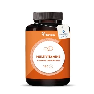 COMPLETE MULTIVITAMIN FORMULA – Packed with 25 essential nutrients, including Vitamins A, B12, C, D & E, plus minerals such as Iron, Zinc, Selenium & Copper, designed to support daily health & wellbeing. ENERGY & IMMUNE SUPPORT – With 12 vitamins and 9 minerals carefully dosed to help reduce tiredness, boost natural defences, and support mental & physical performance in times of fatigue or stress. TRIPLE ACTION IN ONE TABLET – Supports immunity, promotes vitality, and cares for skin & hair. Sugar-free, lactose-free & gluten-free formula with a pleasant orange taste. Suitable for both men & women. 180 TABLETS – UP TO 6 MONTHS SUPPLY – Just 1 tablet a day with water provides a convenient and long-lasting multivitamin boost. Ideal as part of your daily wellness routine. QUALITY YOU CAN TRUST – Developed under strict quality standards to ensure safety and effectiveness. Vitavea delivers trusted nutritional supplements for your everyday wellbeing.
