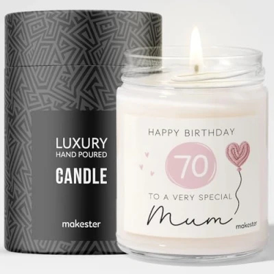 Mum 70th Birthday Gifts Luxury Soy Wax Vanilla, Jasmine, Sugared Almond Makester