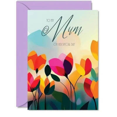 Dazzle your Mum with joy using our exquisite Happy Birthday Card Mum; a premium quality masterpiece that features a captivating design saying 'To My Mum On Her Special Day'. The vibrant colours on this card make it stand out, ensuring it's not just a card but a beautiful keepsake. It's a Personal Gift that shows your Mum how much you care and the perfect way to express your love and appreciation on her special day. What's Inside: Delve into a world of elegance with the inside print showcasing a lovely verse, 'May you have a fantastic day filled with joy, laughter and all the things...' as seen in the second image. There's ample space for your personal message. Crafted on a 360-micron thick environmentally responsible board, this one-sided gloss board offers a luxurious look and feel. Paired with a colored gummed envelope that complements the design, making it a truly special birthday gesture. Ink Perfection: Say goodbye to ink smudges! Our high-quality one-sided coated board ensures a smooth writing experience without the worry of smudging. The uncoated side absorbs ink, providing a flawless finish that adds to the card's overall premium quality. Mum birthday cards, ladies birthday card, womens birthday card, Female birthday cards. Dimensions that Impress: Greet with grandeur using a card sized at 127mm x 178mm, accompanied by an envelope measuring 130mm x 180mm. The card boasts a thickness of 360 microns, ensuring a substantial and impressive presence. Mum birthday card, happy birthday Mum card, birthday card Female, summer birthday cards for women, birthday card flowers. British Craftsmanship: Proudly crafted and quality-checked in the UK, our birthday cards are a testament to expert design and manufacturing. Utilizing Forest Stewardship Council certified board, we contribute to responsible forest management. Expect a swift turnaround and a product that reflects the highest standards of quality. Mum birthday cards, Female birthday cards adult, floral birthday card.