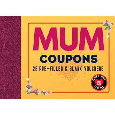 Mum Coupons: Coupon Book for Mum, 25 Pre filled & Blank Vouchers Mum. Unique Gift Mother's Day, Birthday, Christmas, Anniversary or Spontaneous Mom (Black White Version).