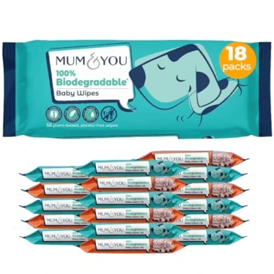 Ultra-Pure Water Formula: 99.4% water composition for consistently moist cleaning; dermatologically tested for sensitive newborn skin; gentle alternative to harsh chemical wipes. Choose Mum & Baby wipes for your little ones, designed by mums for mums. Hypoallergenic & Fragrance-Free: Mum & You biodegradable baby wipes are hypoallergenic and fragrance-free. These baby wipes are dematologically tested and is safe for sensitive newborn baby skin Convenient Wet- Wipes Packs- Pack of 1008 baby wipes (18 packs with 56 wipes each) - Resealable adhesive closure to maintain freshness; perfect for nurseries, diaper bags, and on-the-go families. Mum & You Wipes are available in multipacks of 6, 12 and 18. Premium 100% Biodegradable Design: Mum & You wipes are from plant-based fibers that break down naturally; eco-friendly choice without compromising performance; properly dispose in trash (not flushable). Safe Ingredient Promise: Mum & You promises our wipes are free from parabens, alcohol, dyes and synthetic fragrances; minimalist formula with just 0.6% gentle preservatives; suitable for eczema-prone skin. Soft Yet Effective Texture is gentle enough for delicate skin; strong enough for thorough cleaning; consistently sized wipes for reliable performance with every diaper change Versatile Wet One for All Uses: Perfect for everyday tasks, our serve various purposes from cleaning baby’s face to wiping down surfaces, perfect for travel, art classes and even for adults seeking convenience without sacrificing effectiveness. CREATED BY MUMS, FOR MUMS – Mum & You is a purpose-led, award winning brand founded by real mums who understand the messy, magical reality of parenting. From biodegradable wipes to eco-friendly nappies, every product is thoughtfully designed to make life easier for families and better for the planet.