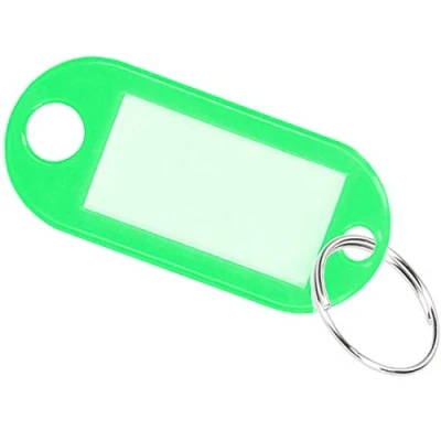 Key tags with key ring in green. Key ring size: approx. 50.0 mm x 22.0 mm. Key rings: approx. 16 mm outer diameter in silver. Labelling field: approx. 30.0 mm x 15.0 mm. International products have separate terms, are sold from abroad and may differ from local products, including fit, age ratings, and language of product, labeling or instructions.