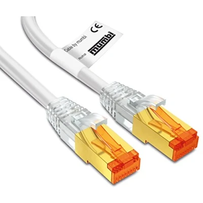 mumbi Cat 7 raw cable patch cable ultra flat with 2x RJ-45 plugs for use in private and corporate networks, twisted pair network cable, Ethernet cable and patch cable or LAN cable, according to pair sequence EIA/TIA-568B A patch cable with both outstanding technical features and an equally outstanding strikingly attractive look. The inner conductors made of highly conductive material are ideal for very fast data connection thanks to higher transmission speeds. Cat7 patch cable with frequency up to 600 MHz / 8-core cable with 4 twisted pairs (twisted pair), CCA copper conductor AWG 26/7. Powerful CAT.7 LAN cable, suitable for 10 Gbps Ethernet networks and can be easily used for all DSL speeds. Sturdy and robust kink protection sleeve as well as the sturdy latch protection ensure a perfect and secure hold and an extremely long service life Quickly and easily connect all network-enabled devices from PC, laptop, routers to hubs, switches, patch panels and game consoles. Extremely robust and elastic with a kink protection sleeve