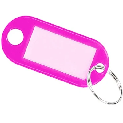 key plate with key ring in pink With pre-assembled key ring and replaceable labelling field with transparent protective cover Key ring size: approx. 50.0 mm x 22.0 mm Key rings: approx. 16 mm outer diameter in silver Labelling field: approx. 30.0 mm x 15.0 mm