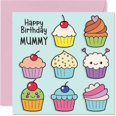 Mummy Birthday Card Cupcakes Happy for from Son Daughter, 145mm Fairy Cake Baking Bday Greeting Cards