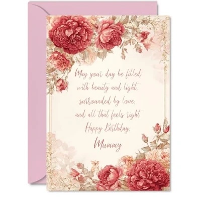 Mummy Birthday Card Vintage Peonies Happy for from Son Daughter, A5 Classic and Timeless Bday Greeting Cards