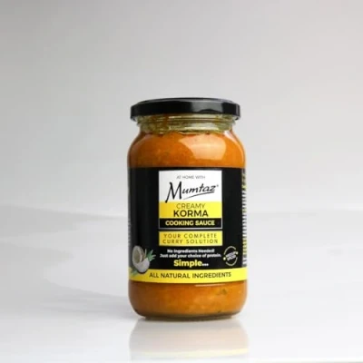 Creamy Korma Cooking Sauce 350g This cooking sauce is so easy going it gets on with everything. Your complete curry solution. Our Mumtaz Creamy Korma Cooking Sauce is an exotic fusion of ingredients fresh from our kitchen. No ingredients needed! Just add your choice of protein. Simple... Weight: 350g. Serves: 4-5 Made with all natural ingredients. No Artificial Preservatives No Artificial Flavours No Artificial Colours No Thickeners Vegetarian Friendly Gluten Free No MSG