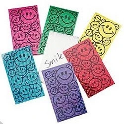 Pack of 12 Laser Smile Face Notepads. You will be smiling all day long when you use these bright and cheerful 3 3/4" smile face notepads! Keep one of these memo pads in your pocket or purse to jot down quick notes. These are also just the right size to tuck into a goody bag for your party guests! Everyone loves a smile! 20 Pages