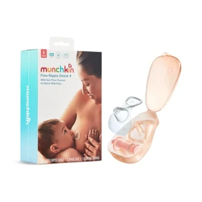 A REVELATION IN LACTATION: See-Through Channel to Watch Milk Flow – The Flow Nipple Shield+ Starter Kit size 16mm features a patented, see-through channel that allows you to see your breast milk flow for the first time ever. This innovative design gives you confidence by visibly showing your milk supply, ensuring that you are meeting your breastfeeding goals. COMFORTS SORE NIPPLES: Soft-touch, 100% food-grade silicone soothes sore nipples, ensuring a more comfortable breastfeeding experience. DURABLE AND LONG-LASTING: The Flow Nipple Shield+ design provides the comfort, warmth, and closeness you and your baby need, making each nursing session more intimate and soothing. Built to last for up to 200 nursing sessions, offering a reliable solution for your breastfeeding needs. AVAILABLE IN FOUR SIZES: Choose from 16mm, 20mm, 24mm or 28mm sizes to ensure the perfect fit for your unique needs. Be sure to check your size before ordering your Flow Nipple Shield+ CONVENIENT STERILISING TRAVEL CASE & CLEANING SYRINGE: Includes a case that doubles as a steam steriliser for easy travel and cleaning, along with a reusable syringe to keep the flow channel clean. EXPLORE THE FULL MUNCHKIN BREASTFEEDING RANGE: Discover additional products to enhance your breastfeeding journey, including the Munchkin Warm Touch Lactation Massager, Silicone Breast Milk Collector and Silicone Breast Pump.