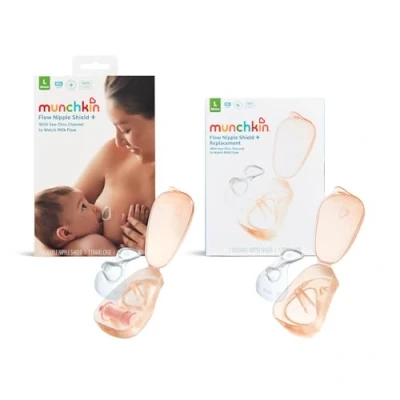 Munchkin Flow 24mm Nipple Shield+ 2 Pack and Replacement Kit See Your Milk While You Breastfeed Breast Feeding & Baby Essentials Duo Set