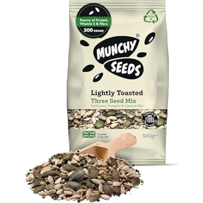 Munchy Seeds Lightly Toasted 3 Seed Mix, Pumpkin Seeds, Sunflower & Linseed, Free from Nuts for Allergies, Baking, Breakfast Cereals Granola 500g, White