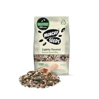Munchy Seeds Lightly Toasted 7 Seed Mix, Pumpkin Seeds, Sunflower Hulled Hemp, Chia, Rapeseed, Brown Linseed (Flax) & Golden Linseed, for Baking, Breakfast Cereals Granola 500g, White