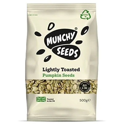 Munchy Seeds Lightly Toasted Pumpkin, Source of Protein & Gluten Free, Packed with, from Nuts for Allergy Sufferers, Vegan Food Baking, Breakfast Cereals Granola 500g, White