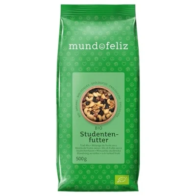 A delicious mix of organic nuts and fruit; Since we don’t use any artificial additives, aromas, sulphur or similar, the colour of our products will change from the original starting product. This will not affect the taste or the quality, however. MUNDO FELIZ organic trail mix – A mixture of 50% organic nuts and 50% organic dried fruits; We deliberately avoid artificially adding refined sugar to our products. The sugar content you can find in the nutritional values is based on the natural fruit sugar content. Packed with energy and great for athletes, vegans, vegetarians or anyone who loves healthy snacks No additives or preservatives Gluten-, lactose- and GMO-free; Organic dried fruits and nuts are purely natural products, which can vary based on weather conditions during growth and regional circumstances, so the bitter constituent of the nuts can naturally fluctuate.