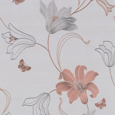 Muriva Amilia Floral Flowers Metallic Butterfly Butterflies Wallpaper Embossed Vinyl Foiled 10m Roll [Stone Rose Gold 701410]