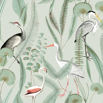 Muriva Eden Kivu Birds Water Plants Wallpaper Dark Green M37414
