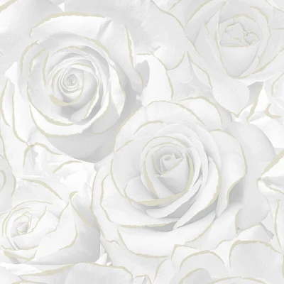 Muriva Madison Rose Glitter Wallpaper Modern for Living Room, Bedroom, Fireplace Decorative Luxury Wall Paper with Large Photographic White Roses Detailing (White & Gold)