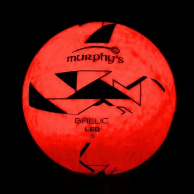 LED ILLUMINATION FOR GAELIC FOOTBALL: Light up your gaelic football game with our ball, designed to add a vibrant spectacle to every match. The LED lights activate with a simple bounce or kick, ensuring visibility and excitement in low-light conditions. PREMIUM RUBBER CONSTRUCTION: Made with high-quality, durable rubber, the ball ensures lasting performance and resilience. Designed to endure intense Gaelic football play, it's perfect for training sessions or friendly matches under the lights. RECHARGEABLE BATTERY: Equipped with a 100mAh rechargeable battery, this Gaelic football provides up to 90 minutes of illuminated playtime. The Type-C USB charger port makes recharging quick and convenient, keeping your game going longer. WATER-RESISTANT DESIGN: Built to handle various weather conditions, Murphy’s LED football features a water-resistant design. The secure battery cover ensures that the ball remains durable and functional, rain or shine. GREAT GIFT FOR FOOTBALL ENTHUSIASTS: The perfect present for any football fan, this ball offers endless outdoor fun, keeping them active and entertained day and night with exciting and challenging play they will enjoy!