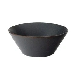 Conical Bowl. Vitrified Porcelain for strength and durability. Reactive glaze makes each piece unique. Dishwasher safe. Size: 6.25in/16cm (160 x 160 x 65mm). Colour: Black. Pack of 6.