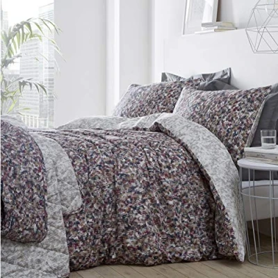 Striking abstract pattern in an array of colours Fully reversible, featuring a more neutral version of the same design on the other side. 100% 200 thread count cotton percale Double duvet cover (200 x 200cm) and 2 pillowcases (50 x 75cm) Machine washable