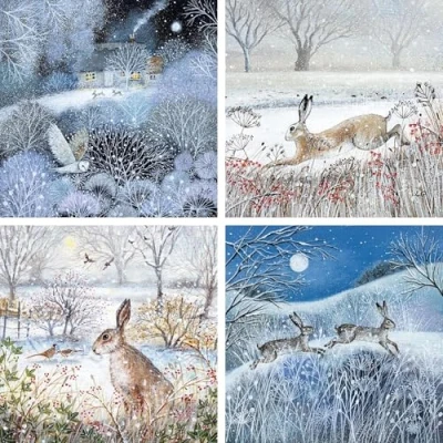 BEAUTIFUL CHARITY CHRISTMAS CARDS: A box of twenty festive Christmas cards sold in aid of British Heart Foundation, NSPCC, Mind, Marie Curie and Shelter perfect for sending a kind, heartfelt message to special friends, neighbours and family. EACH CARD MEASURES: 135 x 135 mm BRANDED PREMIUM QUALITY CARDS: These cards are manufactured by Museums & Galleries, a UK card company, renowned for creating innovative and attractive designs, on high quality board, finished to an excellent standard. GREETING: The greeting inside each card reads "Merry Christmas and a Happy New Year". STUNNING ARTISTIC DESIGNS: featuring four lovely designs of hares and birds in the snowy countryside. Each card comes with a coordinating envelope. COMBINED CHARITIES: The charity contribution on these cards is split equally between the following charities: British Heart Foundation, NSPCC, Mind, Marie Curie and Shelter. ENVIRONMENTALLY FRIENDLY: Reassuringly, these cards will not harm our precious planet. They are eco-friendly and sustainable, using paper and ink from responsibly managed sources. They are fully recyclable. GORGEOUS CARDS: Each of these wonderful Christmas cards will let special friends or loved ones know that they are in your thoughts and that you want to send them festive wishes at this special time of year. Your purchase will also be helping to support a worthy cause.