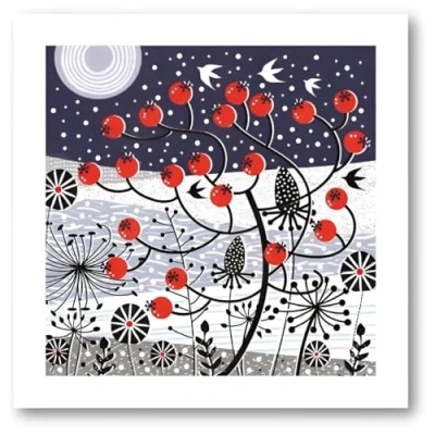 BEAUTIFUL CHRISTMAS CARDS: A pack of eight festive Christmas cards, suitable for sending a kind, heartfelt message to special friends, neighbours and family. EACH CARD MEASURES: 130 x 130mm BRANDED PREMIUM QUALITY CARDS: Each card is manufactured by Museums & Galleries, a UK card company, renowned for creating innovative and attractive designs, on high quality board, finished to an excellent standard. GREETING: The greeting inside each card reads "Merry Christmas and a Happy New Year". CONTEMPORARY ARTISTIC DESIGN: Featuring a bold, graphic design of winter plants with red berries and a snowy landscape, under a full moon. Each card comes with a coordinating envelope. ENVIRONMENTALLY FRIENDLY: Reassuringly, these cards will not harm our precious planet. They are eco-friendly and sustainable, using paper from responsibly managed sources and vegetable-based inks. They are fully recyclable. STYLISH CARDS: Each of these attractive Christmas cards will let someone special, or a loved one, know that they are in your thoughts and that you want to send them festive wishes at this special time of year.