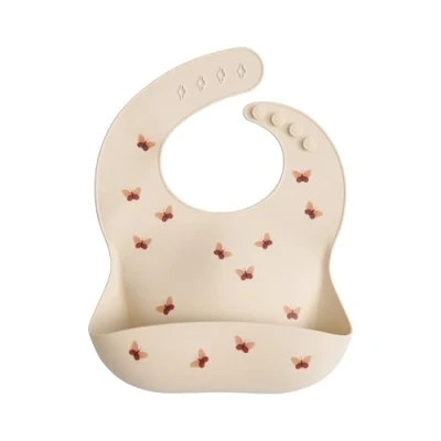 Mushie Baby Silicone Bib Adjustable Fit Waterproof Bibs Easy Wipe Feeding 4 Sizes with Deep Front Pockets 100% BPA and Phthalate Free (Butterflies)