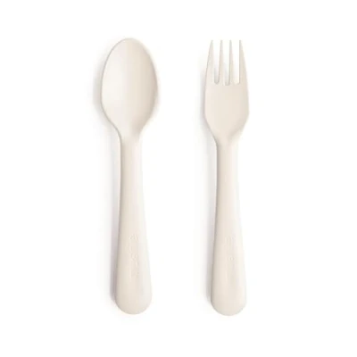 Mushie Fork and Spoon Set for Kids Flatware Cutlery 1x of Dinnerware Pieces Reuseable Dishwasher Microwave Safe Easy Baby or Child to Hold Made in Denmark (Ivory)