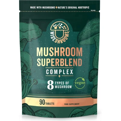 Wiseshrooms Nootropic Mushroom Complex is an advanced blend of Lion's Mane, Cordyceps, Reishi, Chaga, and Turkey Tail, enhanced with organic black pepper for absorption. Specifically formulated to support cognitive function, memory, and mental clarity, these vegan capsules are quality tested and ideal for natural brain support.