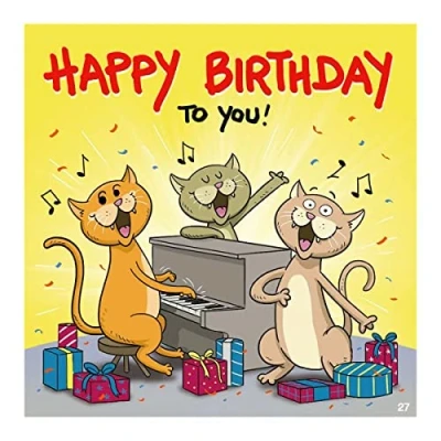 Humorous designed music card with matching slogan for birthday When you open the folding card, the song "Happy Birthday to you" sounds Printed on the outside and inside, one page is blank for personal words, messages and messages for the birthday child The double card is made of sturdy paper and comes with matching coloured envelope Card size approx. 16.5 x 17 cm. Weight: approx. 44 g