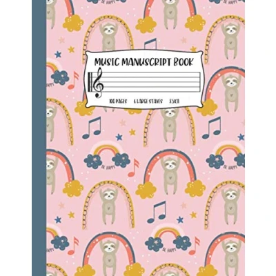 Music Manuscript Book For Kids: Wide Staff Notebook Blank Sheet Paper With 6 Staves Rainbow Sloths