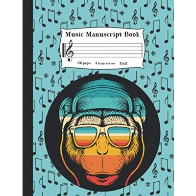 Music Manuscript Book For Kids: Wide Staff Notebook Blank Sheet Paper With 6 Staves Retro Monkey