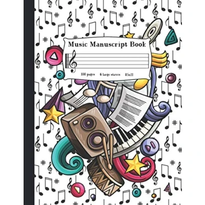 Music Manuscript Book For Kids: Wide Staff Notebook Blank Sheet Paper With 6 Staves White Musical Notes