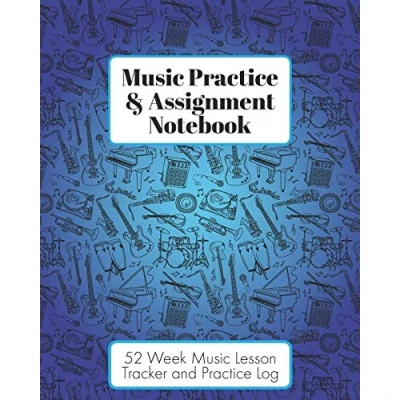 Music Practice & Assignment Notebook: 52 Weeks of Lesson Tracking Charts Record Notes and Log Book Cool Blue Instruments for Boys Girls