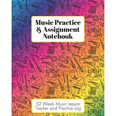 Music Practice & Assignment Notebook: 52 Weeks of Lesson Tracking Charts Record Notes and Log Book Rainbow Instruments for Girls or Boys