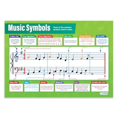EDUCATIONAL CHART DESIGNED BY TEACHERS: Our Music Symbols poster helps students to learn, engage and remember more information than ever before. Covering some of the most common symbols used in music, this unique school poster can play a vital role in improving both students' understanding and classroom décor. SUPPLEMENT KNOWLEDGE: Our educational school posters are colourful, beautifully illustrated and contain a huge amount of valuable information. The music poster is specifically designed to help students gain a greater understanding of music symbols. The wall chart is a great resource for Schools, Classrooms, Music Teachers, Students, Tutors, Home School Parents and Home School Kids. MAKE LEARNING FUN: Engaging, clear and colourful designs and images create a fun learning environment in which students can excel. Our amazing wall posters can help to increase students’ interest towards music, while recapping any key information they've been taught. LARGE SIZE – IDEAL FOR READING FROM A DISTANCE: Our school wall charts are a generous size, measuring 594 mm x 850 mm (A1). This ensures all posters are easily readable from a distance. Our educational posters are a fantastic way of brightening and decorating any classroom and can easily complement every type of learning environment. THE UK’s NO. 1 PROVIDER: Brought to you by Daydream Education, the UK's leading provider of educational posters for schools, with a range that spans over 25 subjects across key stages 1 – 5. By combining a bold, visual approach with simple, concise information, we have provided over five million resources to more than 50,000 classrooms worldwide.