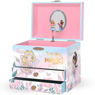 Musical Fairy Jewellery Box for Girls Kids Music with Spinning and Mirror, Princess Birthday Gifts Little Girls, Ages 3 10 17.1 x 13.3 15.2 cm