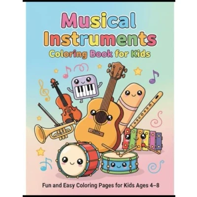 Musical Instruments Coloring Book for Kids Ages 48: Fun and Easy Pages to Learn Young