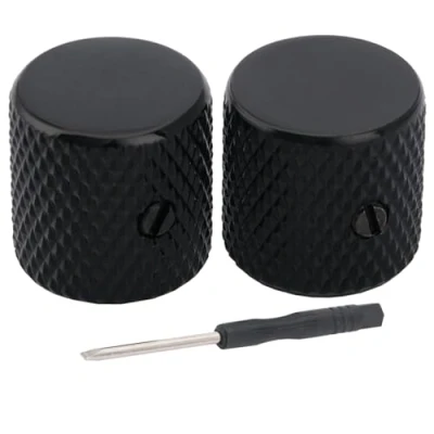 Fits for many electric guitars and basses, including Fender and Squier Strat/Tele/Precision Bass/Jazz Bass and other similar style guitar bass Compatible with 6mm(15/64 inch) solid shaft, coarse spline and fine spline split shaft potentiometers, good for most imported pots like Alpha and USA made split shaft pots. DO NOT fit for USA standard 1/4 inch(6.35mm) solid shaft pots Height: 19mm(3/4 inch), outer diameter: 19mm(3/4 inch), inner hole diameter: 6mm(15/64 inch) Made of quality steel, knurled flat top knobs, with set screw to secure the knob to the shaft. You need to tighten the set screw in line with the split when installing this knob on a split shaft pot Package includes: 2pcs knobs and screwdriver
