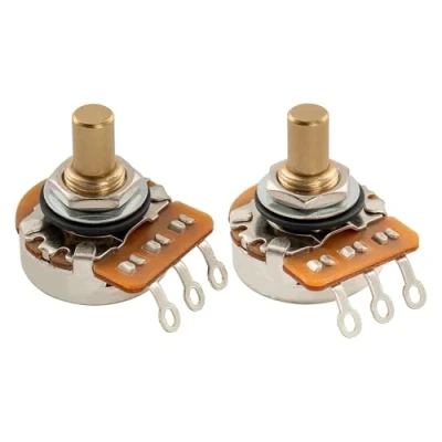 Fits most USA electric guitars and basses, like Jazzmaster and Jaguar style Solid Shaft diameter: 6.35mm(1/4 inch), thread diameter: 9.5mm(3/8 inch), thread height: 6.5mm(1/4 inch) Full brass made shaft and thread, better conductivity Audio taper and Linear taper, resistance: 1Meg, tolerance: 20%, great for humbuckers or HOT pickups, gives even brighter tone than 500K Package includes: 2pcs pots (1A1B) with mounting accessories