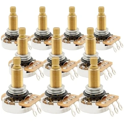 Musiclily Pro HD A1M Pots Brass Metric Split Long Shaft 19mm Audio Taper Potentiometers for Electric Guitar Bass (Set of 10)