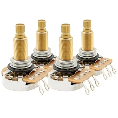 Musiclily Pro HD A1M Pots Brass Metric Split Long Shaft 19mm Audio Taper Potentiometers for LP/SG/Offset Style Electric Guitar Bass (Set of 4)