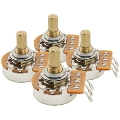 Fits most imported or Asia made electric guitars and basses Solid shaft diameter: 6mm(15/64 inch), Metric sized M8 thread, 8mm in diameter, thread height: 6.5mm(1/4 inch) Full brass made shaft and thread, better conductivity Linear taper, resistance: 250K, tolerance: 20%, usually used for single coil pickups, bleeds off some of the high frequencies to ground, gives warmer tone than 500K Package includes: 4pcs pots with mounting accessories