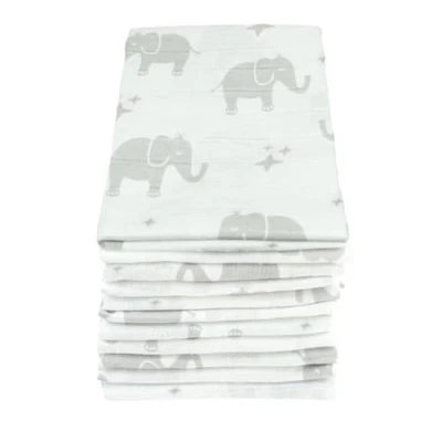 MuslinZ 12 Pack Muslin Cloths 70 x 70cm 100% Pure Cotton Burp Multi Use Squares (Grey Elephant)