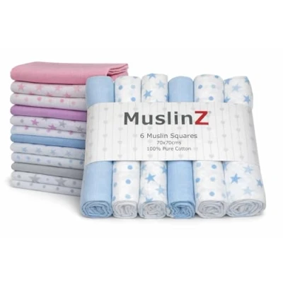 Quality: Award winning MuslinZ baby muslins are made from premium quality fabric, a 6 pack of large 70x70cm muslin squares, providing a soft and gentle touch for your little one. Newborn Essential: our Muslin Cloths have so many uses when feeding or caring for your baby. Use as a Baby Burp Cloth, Feeding Cover, Dribble Catcher, Changing Mat Cover. As a Newborn Swaddle, for Swaddle Bathing or as a Reusable Nappy. Measurement – 70cm x 70cm (27inch x 27inch) approx. Large size for Multiple uses. Baby Gifts or for Baby Shower presents. MuslinZ brand: Designed in the UK, with a range of exclusive prints, to meet the highest quality and safety. Made with care to Oeko Tex 100 Standard. Easy to Care For: Our baby muslins are easy to care for, they can be machine washed and are quick to dry. Making them a newborn baby must have for every busy new parent. They are durable, ensuring that it can withstand the wear and tear of everyday use. Buy well - buy once.